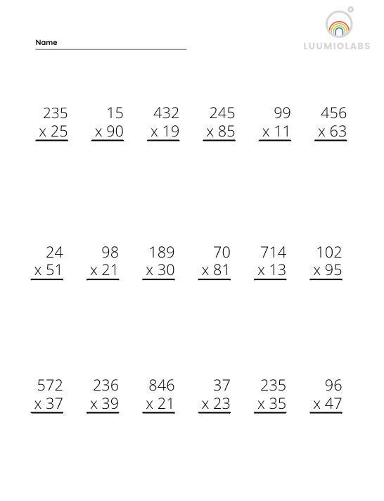 Multiplication Worksheets - Math Worksheets 4 Kids Advanced Multiplication. Challenge your math skills by multiplying numbers from 3-digit to 8-digit. Word problems are also included in these worksheets. Multiplication Drills. Multiplication drills have 15, 25, 50, 75 and 100 problems per page. Options can be selected from horizontal/vertical and grids/no grids. Multiplication Word Problems